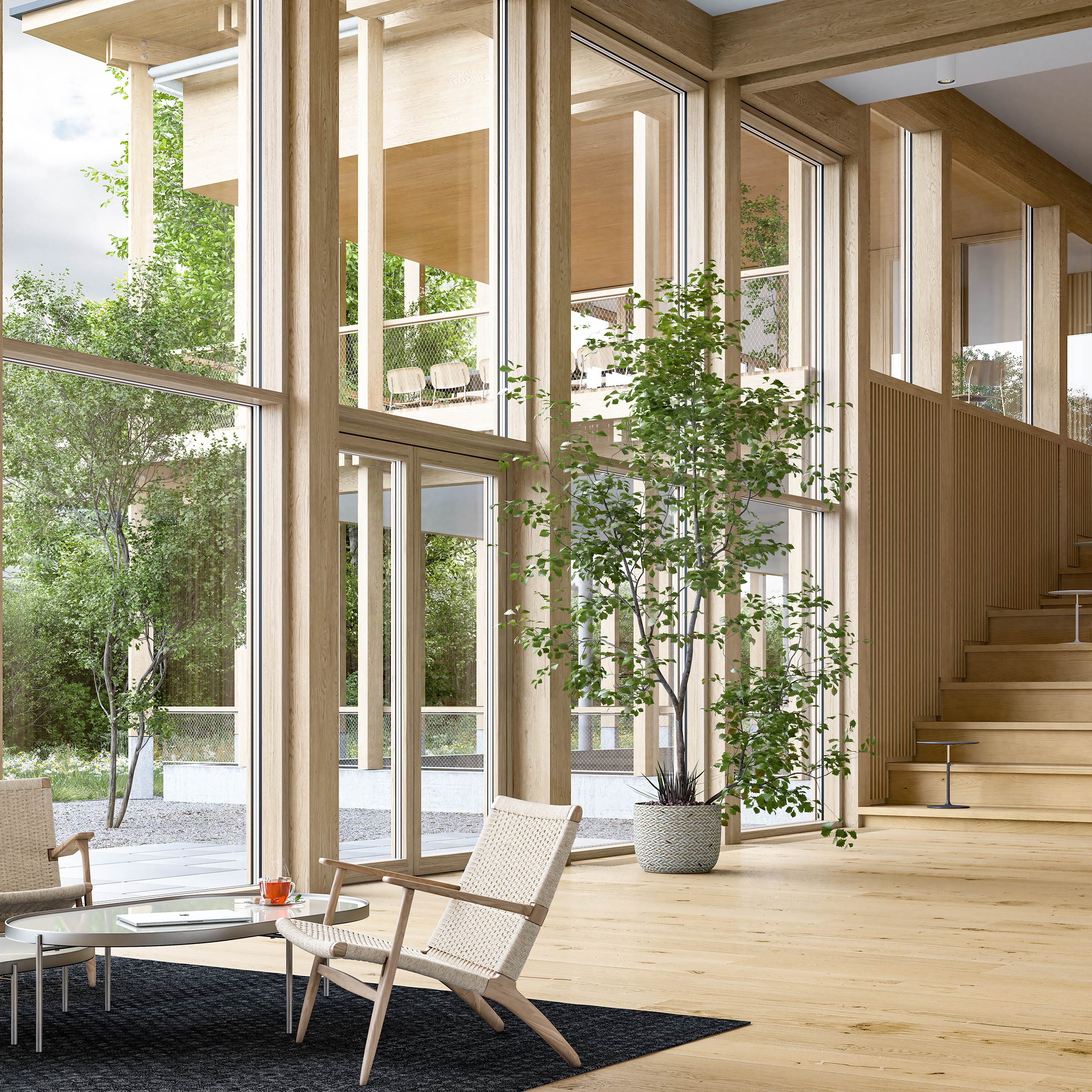 Wir sind uns der besonderen Lage unseres Geschäftssitzes mitten im Wohnquartier bewusst und haben uns deshalb für ein Projekt entschieden, das sich harmonisch in die Nachbarschaft einfügt. Die Kombination von Garten- und Arbeitswelten soll zu einem Begegnungsort mit einer besonderen Atmosphäre führen. Wir möchten in einem freundlichen und offenen Gebäude arbeiten, das eine schöne Verbindung zur Umgebung schafft. Das Siegerprojekt «Gartenhaus» des Architekturbüros HILDEBRAND Studios AG nutzt die bestehenden Gebäudestrukturen sowie natürliche Materialien wie zum Beispiel Holz. Es schafft im Quartier neue Grünflächen: 60 Prozent der heute versiegelten Böden verschwinden. Neu werden die beiden Gebäude in der Mitte durch einen einladenden Eingangsbereich mit einer Piazza verbunden.